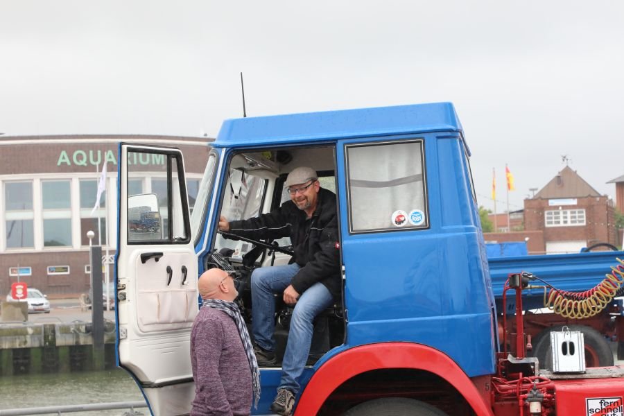 Zwischenzeitlich fährt Jascha den Magirus Uranus zum Wangeroogekai